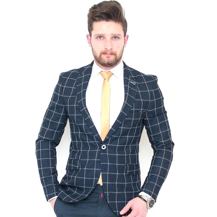テーラードジャケット チェック ブレザー メンズ ネイビー 紺 ジャケパン 一つボタン 細身 タイト シルエット ビジネスジャケット Scorpion2269kon2 Bin 1 Limitedヤフーショップ 通販 Yahoo ショッピング